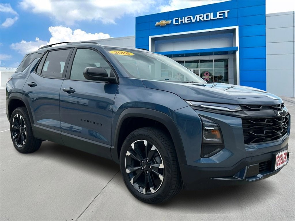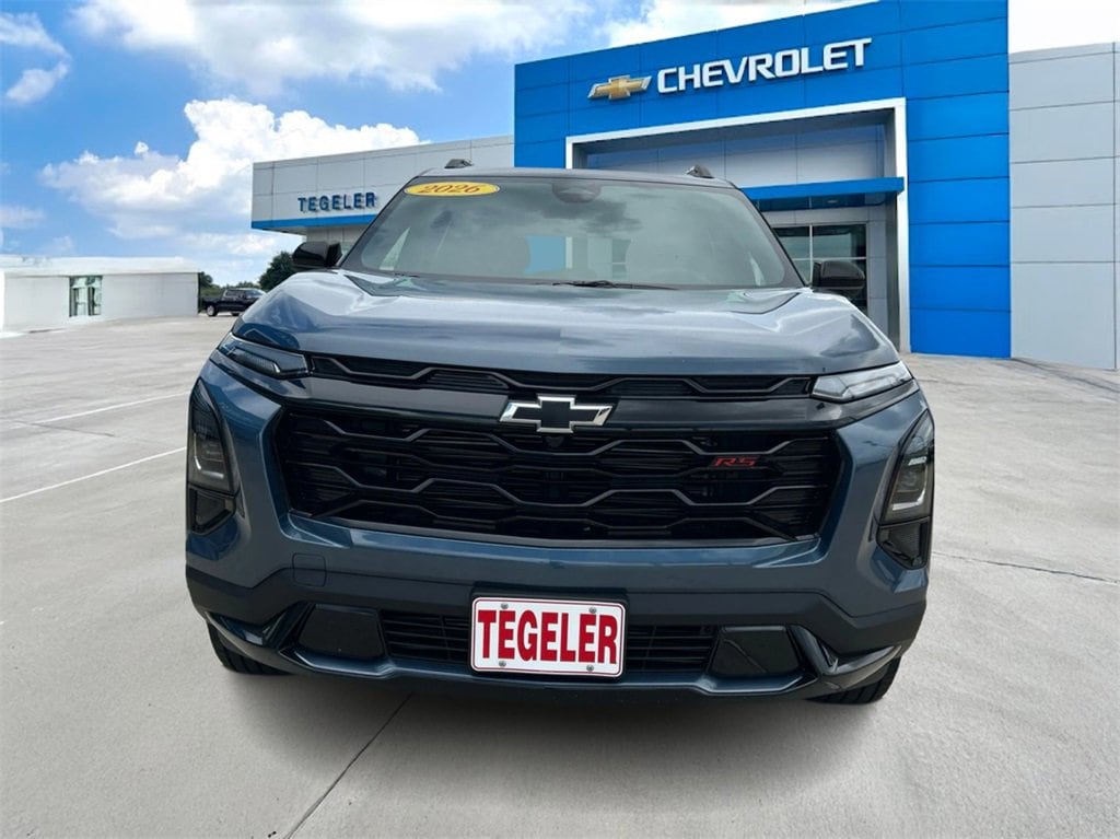 Tegeler Chevrolet is proud to present you with another True Market Priced Vehicle. This 2026 Chevrolet Equinox RS is loaded with the following Factory Options: Convenience Package III (Front Passenger 2-Way Power Lumbar Seat Adjuster, Front Passenger 8-Way Power Seat Adjuster, Heated Rear Outboard Seating Positions, Memory Settings, Ventilated Driver Seat, and Ventilated Front Passenger Seat), Preferred Equipment Group 1RS, 2-Way Power Driver Lumbar Control Seat Adjuster, 4-Wheel Disc Brakes, 5.81 Final Drive Axle Ratio, 6 Speakers, ABS brakes, Air Conditioning, Alloy wheels, AM/FM radio: SiriusXM, Auto High-beam Headlights, Automatic temperature control, Brake assist, Bumpers: body-color, Compass, Delay-off headlights, Driver 8-Way Power Seat Adjuster, Driver door bin, Driver vanity mirror, Dual front impact airbags, Dual front side impact airbags, Electronic Stability Control, Emergency communication system: OnStar and Chevrolet connected services capable, Evotex Seat Trim, Four wheel independent suspension, Front anti-roll bar, Front Bucket Seats, Front Center Armrest, Front dual zone A/C, Front Passenger 4-Way Manual Seat Adjuster, Front reading lights, Fully automatic headlights, Garage door transmitter, Heated door mirrors, Heated Driver & Front Passenger Seats, Heated front seats, Illuminated entry, Low tire pressure warning, Navigation System, Occupant sensing airbag, Outside temperature display, Overhead airbag, Overhead console, Panic alarm, Passenger door bin, Passenger vanity mirror, Power door mirrors, Power driver seat, Power Liftgate, Power steering, Power windows, Premium audio system: Chevrolet Infotainment 3, Radio data system, Radio: 11.3 Diagonal Advanced Color LCD Display, Rain sensing wipers, Rear anti-roll bar, Rear reading lights, Rear seat center armrest, Rear window defroster, Rear window wiper, Remote keyless entry, Security system, SiriusXM w/360L Trial Subscription, Speed control, Speed-sensing steering, Split folding rear seat, Spoiler, Sport steering wheel, Steering wheel mounted audio controls, Tachometer, Telescoping steering wheel, Tilt steering wheel, Traction control, Trip computer, Variably intermittent wipers, and Wheels: 19 Carbon Flash Metallic Aluminum!!