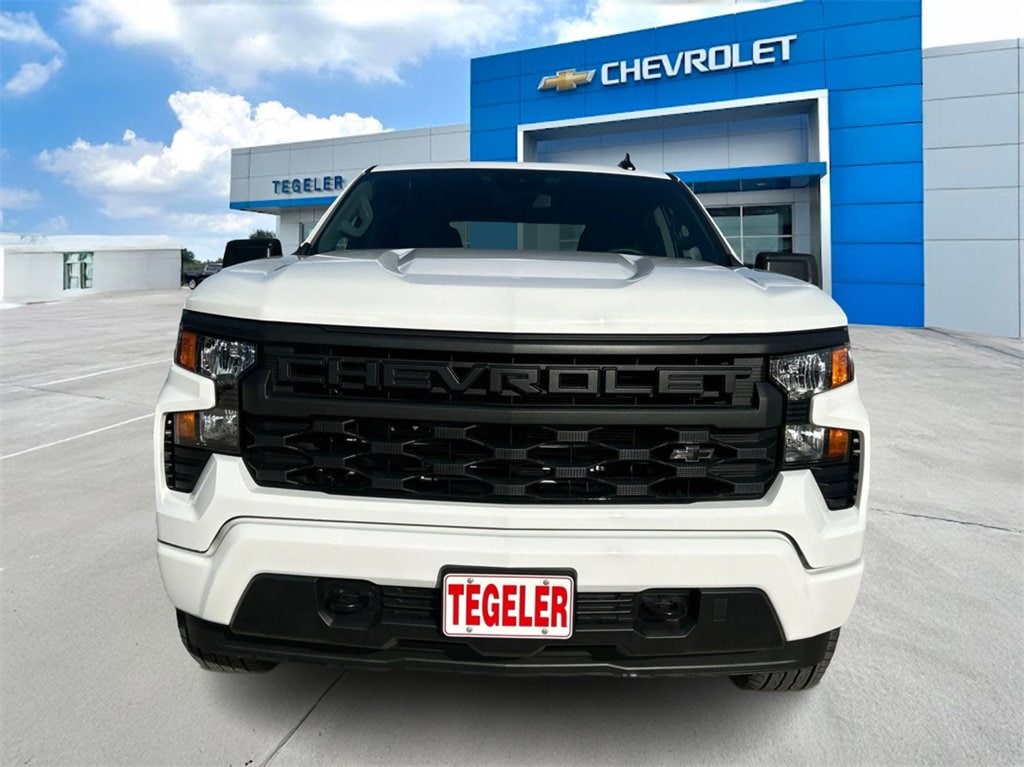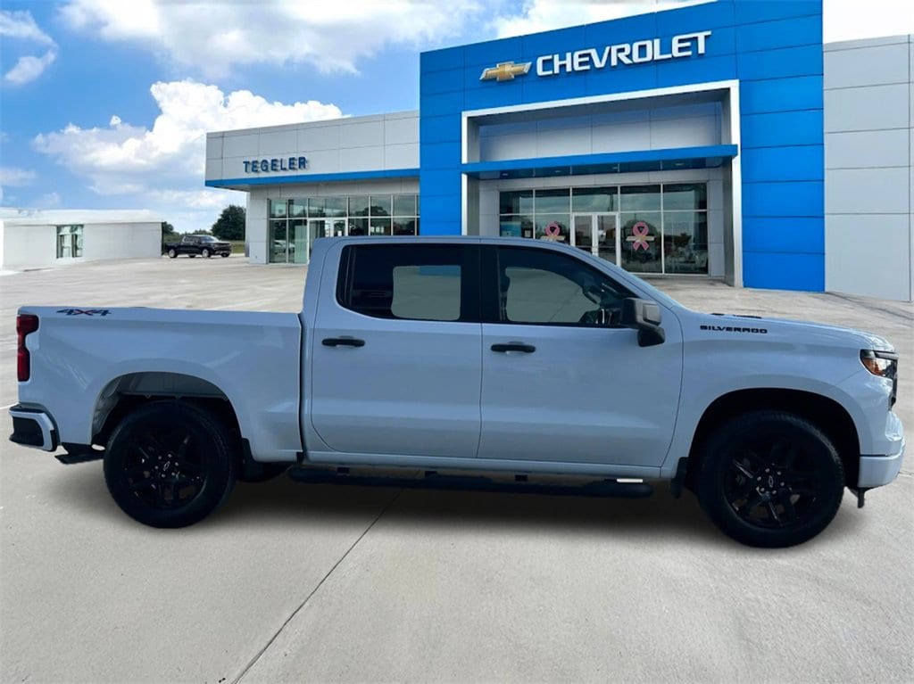 Tegeler Chevrolet is proud to present you with another True Market Priced Vehicle. This 2026 Chevrolet Silverado 1500 Custom is loaded with the following Factory Options: 8-Speed Automatic, 4WD, and Jet Black Cloth Custom Convenience Package (Electric Rear-Window Defogger, EZ Lift Power Lock & Release Tailgate, LED Cargo Area Lighting, Remote Vehicle Starter System, and Theft Deterrent System (Unauthorized Entry)), Custom Value Package, High Capacity Suspension Package, Trailering Package (Hitch Guidance), 8-Speed Automatic, 4WD, Jet Black Cloth, 10-Way Power Driver Seat w/Lumbar, 120-Volt Bed Mounted Power Outlet, 120-Volt Interior Power Outlet, 3.42 Rear Axle Ratio, 3.5 Monochromatic Display Driver Info Center, 4-Wheel Disc Brakes, 40/20/40 Front Split-Bench Seat, 6 Speakers, 6-Speaker Audio System, ABS brakes, Air Conditioning, Alloy wheels, AM/FM radio: SiriusXM, Apple CarPlay/Android Auto, Auto High-beam Headlights, Automatic Emergency Braking, Bluetooth® For Phone, Brake assist, Bumpers: body-color, Cloth Seat Trim, Color-Keyed Carpeting Floor Covering, Compass, Deep-Tinted Glass, Delay-off headlights, Driver door bin, Driver vanity mirror, Dual front impact airbags, Dual front side impact airbags, Dual Rear USB Ports (Charge Only), Electronic Cruise Control, Electronic Stability Control, Emergency communication system: OnStar, Following Distance Indicator, Forward Collision Alert, Front anti-roll bar, Front Center Armrest w/Storage, Front Frame-Mounted Black Recovery Hooks, Front Pedestrian Braking, Front reading lights, Front Rubberized Vinyl Floor Mats, Front wheel independent suspension, Fully automatic headlights, HD Rear Vision Camera, Heated door mirrors, Illuminated entry, IntelliBeam Automatic High Beam On/Off, Lane Keep Assist w/Lane Departure Warning, Low tire pressure warning, Manual Tilt Wheel Steering Column, Occupant sensing airbag, OnStar Services Capable, Outside temperature display, Overhead airbag, Overhead console, Panic alarm, Passenger door bin, Passenger vanity mirror, Power door mirrors, Power driver seat, Power Front Windows w/Driver Express Up/Down, Power Front Windows w/Passenger Express Down, Power Rear Windows w/Express Down, Power steering, Power windows, Premium audio system: Chevrolet Infotainment 3, Radio data system, Radio: Chevrolet Infotainment 3 System, Rear 60/40 Folding Bench Seat (Folds Up), Rear reading lights, Rear Rubberized-Vinyl Floor Mats, Rear step bumper, Rear window defroster, Remote Keyless Entry, Remote keyless entry, Security system, SiriusXM Trial Subscription, Speed control, Speed-sensing steering, Split folding rear seat, Standard Tailgate, Tachometer, Teen Driver, Tilt steering wheel, Tire Pressure Monitoring System, Traction control, Trip computer, Variably intermittent wipers, Voltmeter, Wheels: 20 x 9 Bright Silver Painted Aluminum, and Wi-Fi Hot Spot Capable!!