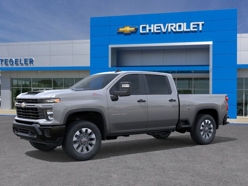 Recent Arrival! Tegeler Chevrolet is proud to present you with another True Market Priced Vehicle. This 2026 Chevrolet Silverado 2500HD Custom is loaded with the following Factory Options: 10-Speed Automatic, 4WD, and Jet Black Cloth Suspension Package, 10-Speed Automatic, 4WD, Jet Black Cloth, 170 Amp Alternator, 2-Speed Electronic Shift Transfer Case, 3.5 Diagonal Monochromatic Display DIC, 3.73 Rear Axle Ratio, 4-Wheel Disc Brakes, 6 Speakers, 6-Speaker Audio System, 720 Cold-Cranking Amps Heavy-Duty Battery, ABS brakes, Air Conditioning, Alloy wheels, AM/FM radio: SiriusXM with 360L, Apple CarPlay/Android Auto, Auto High-beam Headlights, Black Mirror Caps, Bluetooth® For Phone, Brake assist, Chevrolet Connected Access Capable, Cloth Seat Trim, Color-Keyed Carpeting Floor Covering, Compass, Deep-Tinted Glass, Delay-off headlights, Driver door bin, Dual front impact airbags, Dual front side impact airbags, Durabed Pickup Bed, Electronic Cruise Control with Set and Resume Speed, Electronic Stability Control, Emergency communication system: OnStar, Front 40/20/40 Split-Bench Seats with Lockable Storage, Front anti-roll bar, Front Center Armrest w/Storage, Front reading lights, Front Rubberized Vinyl Floor Mats, Front wheel independent suspension, Fully automatic headlights, HD Rear Vision Camera, Heated door mirrors, Heated Vertical Trailering Mirrors, Illuminated entry, Locking Tailgate, Low tire pressure warning, Manual Tailgate Function with No EZ Lift, Manual Tilt-Wheel Steering Column, Occupant sensing airbag, OnStar Services Capable, Outside temperature display, Overhead airbag, Overhead console, Panic alarm, Passenger door bin, Passenger vanity mirror, Power Door Locks, Power door mirrors, Power Front Windows with Driver Express Up/Down, Power Front Windows with Passenger Express Down, Power Rear Windows with Express Down, Power steering, Power windows, Premium audio system: Chevrolet Infotainment 3, Push Button Start, Radio: Chevrolet Infotainment 3 System, Rear 60/40 Folding Bench Seat (folds Up), Rear reading lights, Rear Rubberized Vinyl Floor Mats, Rear step bumper, Remote Keyless Entry, Remote keyless entry, SiriusXM with 360L Trial Subscription, Speed control, Split folding rear seat, Standard Tailgate, Tachometer, Tilt steering wheel, Traction control, Trip computer, Turn signal indicator mirrors, Variably intermittent wipers, Voltmeter, Wheels: 20 10-Spoke Machined Aluminum, Wi-Fi Hotspot Capable, and Wireless Phone Projection!!