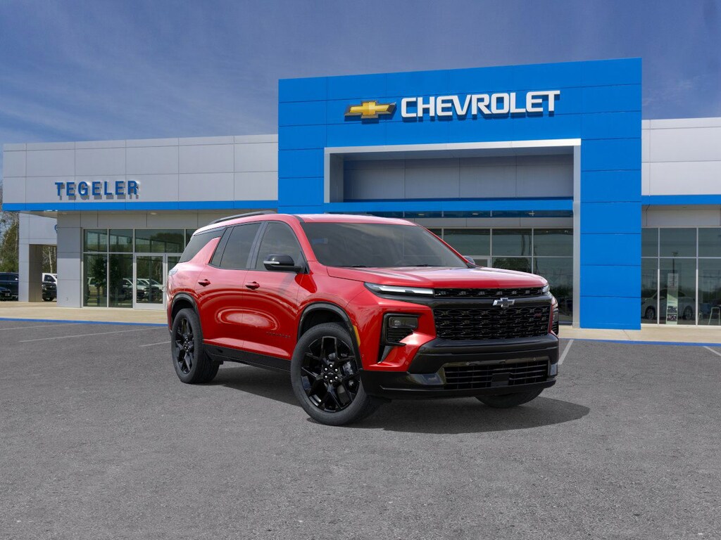 Recent Arrival! Tegeler Chevrolet is proud to present you with another True Market Priced Vehicle. This 2026 Chevrolet Traverse RS is loaded with the following Factory Options: 12 Speakers, 3rd row seats: split-bench, 4-Wheel Disc Brakes, 6-Way Power Front Passenger Seat Adjuster, 8-Way Power Driver Seat Adjuster, ABS brakes, Air Conditioning, Alloy wheels, AM/FM radio: SiriusXM with 360L, Apple CarPlay/Android Auto, Auto High-beam Headlights, Auto tilt-away steering wheel, Auto-dimming door mirrors, Automatic temperature control, Bose Premium 12-Speaker Audio System Feature, Brake assist, Bumpers: body-color, Child-Seat-Sensing Airbag, Compass, Delay-off headlights, Driver 4-Way Power Lumbar Seat Adjuster, Driver door bin, Driver vanity mirror, Dual front impact airbags, Dual front side impact airbags, Electronic Stability Control, Emergency communication system: OnStar, Exterior Parking Camera Rear, Four wheel independent suspension, Front anti-roll bar, Front Bucket Seats, Front Center Armrest, Front dual zone A/C, Front Passenger 4-Way Power Lumbar Seat Adjuster, Front reading lights, Fully automatic headlights, Garage door transmitter, Heated door mirrors, Heated Driver and Front Passenger Seats, Heated front seats, Heated rear seats, Heated steering wheel, Illuminated entry, Low tire pressure warning, Memory seat, Navigation System, Occupant sensing airbag, Outside temperature display, Overhead airbag, Overhead console, Panic alarm, Passenger door bin, Passenger vanity mirror, Perforated Leather-Appointed Seat Trim, Power door mirrors, Power driver seat, Power Liftgate, Power passenger seat, Power steering, Power windows, Radio data system, Radio: : Audio System w/17.7 Diagonal Display, Rain sensing wipers, Rear air conditioning, Rear anti-roll bar, Rear reading lights, Rear window defroster, Rear window wiper, Remote keyless entry, Security system, SiriusXM with 360L Trial Subscription, Speed control, Speed-sensing steering, Spoiler, Sport steering wheel, Steering wheel memory, Steering wheel mounted audio controls, Tachometer, Telescoping steering wheel, Tilt steering wheel, Traction control, Trip computer, Turn signal indicator mirrors, Variably intermittent wipers, Ventilated Driver and Front Passenger Seats, Ventilated front seats, Voltmeter, and Wheels: 22 High Gloss Black Painted Aluminum!!