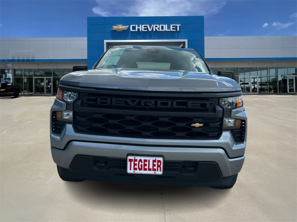 Tegeler Chevrolet is proud to present you with another True Market Priced Pre-Owned Vehicle. This 2024 Chevrolet Silverado 1500 Custom is loaded with the following Factory Options: 8-Speed Automatic and Black Cloth Custom Convenience Package (Electric Rear-Window Defogger, EZ Lift Power Lock & Release Tailgate, LED Cargo Area Lighting, Remote Vehicle Starter System, and Theft Deterrent System (Unauthorized Entry)), Custom Value Package, High Capacity Suspension Package, Preferred Equipment Group 1CX (10-Way Power Driver Seat w/Lumbar, 120-Volt Bed Mounted Power Outlet, 120-Volt Interior Power Outlet, 3.5 Monochromatic Display Driver Info Center, Bluetooth® For Phone, Chevrolet Connected Access Capable, Color-Keyed Carpeting Floor Covering, Deep-Tinted Glass, Dual Rear USB Ports (Charge Only), Electrical Steering Column Lock, Electronic Cruise Control, Front Frame-Mounted Black Recovery Hooks, Front Rubberized Vinyl Floor Mats, HD Rear Vision Camera, Manual Tilt Wheel Steering Column, OnStar & Chevrolet Connected Services Capable, Power Front Windows w/Driver Express Up/Down, Power Front Windows w/Passenger Express Down, Power Rear Windows w/Express Down, Rear 60/40 Folding Bench Seat (Folds Up), Rear Rubberized-Vinyl Floor Mats, Remote Keyless Entry, SiriusXM Radio, Standard Tailgate, and Wi-Fi Hot Spot Capable), Trailering Package (Hitch Guidance), 8-Speed Automatic, Black Cloth, 3.42 Rear Axle Ratio, 4-Wheel Disc Brakes, 40/20/40 Front Split-Bench Seat, 6 Speakers, 6-Speaker Audio System, ABS brakes, Air Conditioning, Alloy wheels, AM/FM radio: SiriusXM, Auto High-beam Headlights, Automatic Emergency Braking, Brake assist, Bumpers: body-color, Chevytec Spray-On Black Bedliner, Cloth Seat Trim, Compass, Delay-off headlights, Driver door bin, Driver vanity mirror, Dual front impact airbags, Dual front side impact airbags, Electronic Stability Control, Following Distance Indicator, Forward Collision Alert, Front anti-roll bar, Front Center Armrest w/Storage, Front License Plate Kit, Front Pedestrian Braking, Front reading lights, Front wheel independent suspension, Fully automatic headlights, Heated door mirrors, Illuminated entry, IntelliBeam Automatic High Beam On/Off, Lane Keep Assist w/Lane Departure Warning, Low tire pressure warning, Occupant sensing airbag, Outside temperature display, Overhead airbag, Overhead console, Panic alarm, Passenger door bin, Passenger vanity mirror, Power door mirrors, Power driver seat, Power steering, Power windows, Premium audio system: Chevrolet Infotainment 3, Radio data system, Radio: Chevrolet Infotainment 3 System, Rear reading lights, Rear step bumper, Rear window defroster, Remote keyless entry, Security system, Single Outlet Exhaust, Speed control, Speed-sensing steering, Split folding rear seat, Tachometer, Tilt steering wheel, Traction control, Trip computer, Variably intermittent wipers, Voltmeter, and Wheels: 20 x 9 Bright Silver Painted Aluminum!!