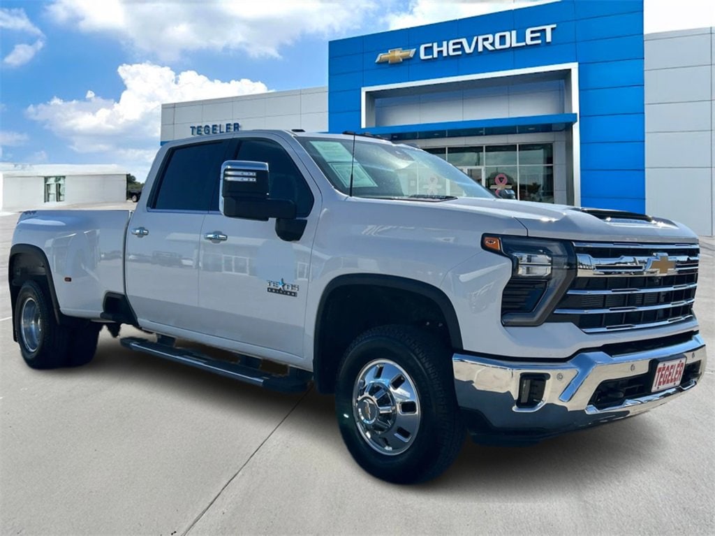 Tegeler Chevrolet is proud to present you with another True Market Priced Pre-Owned Vehicle. This 2025 Chevrolet Silverado 3500HD LTZ is loaded with the following Factory Options: 10-Speed Automatic, 4WD, and Gideon/Very Dark Atmosphere Leather LTZ Convenience Package (2 Charge/Data USB Ports Inside Center Console, Bose Premium 7-Speaker Sound System, Floor-Mounted Center Console, Front Bucket Seats, LED Cargo Area Lighting, Ventilated Driver & Front Passenger Seats, and Wireless Charging), LTZ Convenience Package II (Adaptive Cruise Control, Heated 2nd Row Outboard Seats, Power Sliding Rear Window w/Defogger, and Universal Home Remote), LTZ Texas Edition, Preferred Equipment Group 1LZ (120-Volt Bed Mounted Power Outlet, 120-Volt Interior Power Outlet, 170 Amp Alternator, 6-Speaker Audio System Feature, Auto-Dimming Inside Rear-View Mirror, Bluetooth® For Phone, Chevrolet Connected Access Capable, Chrome Door Handles, Chrome Mirror Caps, Color-Keyed Carpeting Floor Covering, Compass Located In Instrument Cluster, Deep-Tinted Glass, Electric Rear-Window Defogger, EZ Lift Power Lock & Release Tailgate, Front LED Fog Lamps, Front Rain-Sensing Wipers, Front Rubberized Vinyl Floor Mats, HD Rear Vision Camera, Heated Steering Wheel, Hitch Guidance w/Hitch View, In-Vehicle Trailering App System, Keyless Open & Start, Manual Tilt-Wheel/Telescoping Steering Column, OnStar Services Capable, Power Door Locks, Power Front Windows w/Driver Express Up/Down, Power Front Windows w/Passenger Express Up/Down, Power Rear Windows w/Express Down, Push Button Start, Rear Rubberized-Vinyl Floor Mats, Remote Vehicle Starter System, SiriusXM w/360L Trial Subscription, Standard Tailgate, Steering Wheel Audio Controls, Steering Wheel Mounted Electronic Cruise Control, Unauthorized Entry Theft-Deterrent System, Wi-Fi Hotspot Capable, and Wrapped Steering Wheel), Safety Package (Bed View Camera w/2 Trailer Camera Provisions, HD Surround Vision, Rear Cross Traffic Alert, Safety Alert Seat, Trailer Camera Provisions, Trailer Side Blind Zone Alert, and Ultrasonic Front & Rear Park Assist), Suspension Package, Up-Level Rear Seat w/Storage Package, 10-Speed Automatic, 4WD, Gideon/Very Dark Atmosphere Leather, 10-Way Power Driver Seat Adjuster w/Lumbar, 10-Way Power Passenger Seat Adjuster w/Lumbar, 220 Amp Alternator, 4-Wheel Disc Brakes, 6 Speakers, 6 Rectangular Chromed Tubular Assist Steps, ABS brakes, Air Conditioning, AM/FM radio: SiriusXM with 360L, Apple CarPlay/Android Auto, Auto High-beam Headlights, Auto-dimming door mirrors, Auto-dimming Rear-View mirror, Automatic temperature control, Brake assist, Bumpers: chrome, Compass, Delay-off headlights, Driver door bin, Driver Memory, Driver vanity mirror, Dual front impact airbags, Dual front side impact airbags, Durabed Pickup Bed, Electronic Stability Control, Engine Block Heater, Exhaust Brake, Front 40/20/40 Split-Bench Seats w/Lockable Storage, Front anti-roll bar, Front Center Armrest w/Storage, Front dual zone A/C, Front fog lights, Front License Plate Kit, Front reading lights, Front wheel independent suspension, Fully automatic headlights, Heated door mirrors, Heated Driver & Front Outboard Passenger Seats, Heated front seats, Heated steering wheel, Heavy-Duty 80 Amp-Hr Battery, Illuminated entry, Low tire pressure warning, Memory seat, Occupant sensing airbag, Outside temperature display, Overhead airbag, Overhead console, Panic alarm, Passenger door bin, Passenger vanity mirror, Perf Leather-Appointed Front Outboard Seat Trim, Power door mirrors, Power driver seat, Power passenger seat, Power steering, Power Tailgate, Power windows, Premium audio system: Chevrolet Infotainment 3 Premium, Radio: Chevrolet Infotainment 3 Premium System, Rain sensing wipers, Rear reading lights, Rear seat center armrest, Rear step bumper, Rear window defroster, Remote keyless entry, Security system, Speed control, Speed-sensing steering, Split folding rear seat, St