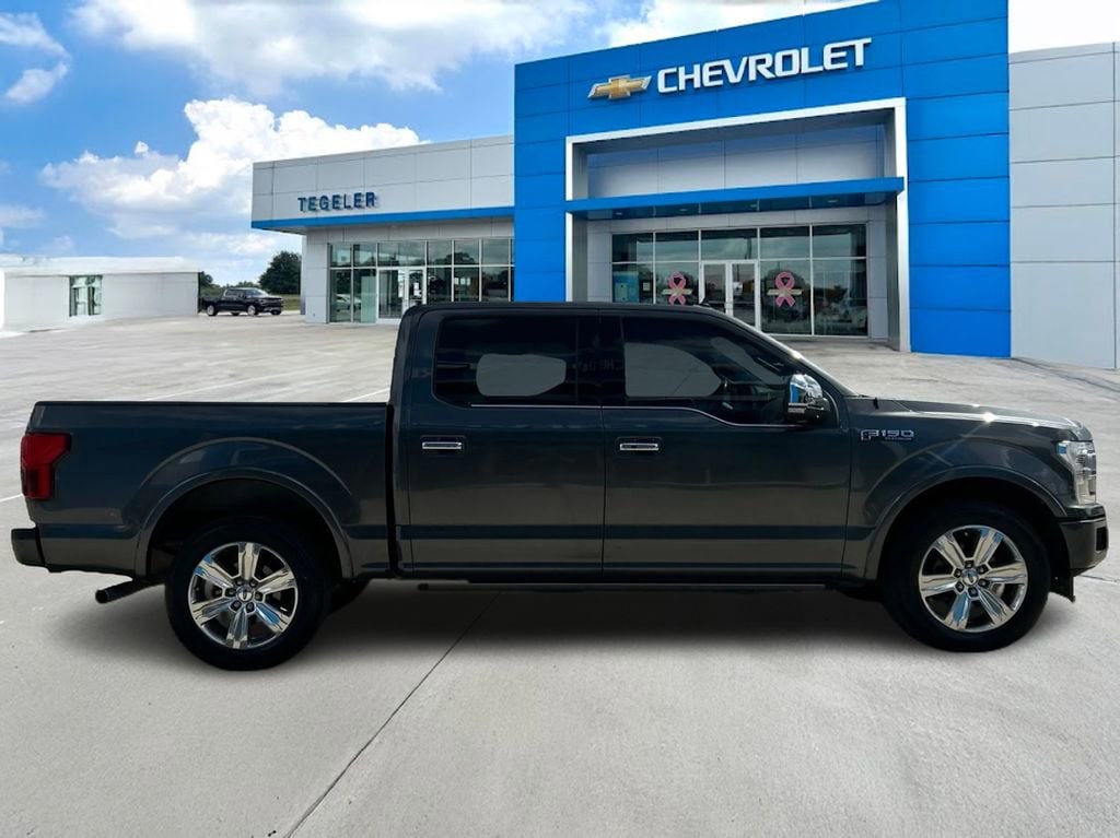Tegeler Chevrolet is proud to present you with another True Market Priced Pre-Owned Vehicle. This 2019 Ford F-150 Platinum is loaded with the following Factory Options: Equipment Group 700A Base, 10 Speakers, 20 Polished Aluminum Wheels, 3.15 Axle Ratio, 4-Wheel Disc Brakes, ABS brakes, Adjustable pedals, Air Conditioning, Alloy wheels, AM/FM radio: SiriusXM, AppLink/Apple CarPlay and Android Auto, Auto High-beam Headlights, Auto tilt-away steering wheel, Auto-dimming door mirrors, Auto-dimming Rear-View mirror, Automatic temperature control, Black Unique Multi-Contour Leather Bucket Seats, Brake assist, Bumpers: body-color, Class IV Trailer Hitch Receiver, Compass, Delay-off headlights, Driver door bin, Driver vanity mirror, Dual front impact airbags, Dual front side impact airbags, Electronic Stability Control, Emergency communication system: SYNC 3 911 Assist, Exterior Parking Camera Rear, Front anti-roll bar, Front Bucket Seats, Front Center Armrest, Front dual zone A/C, Front fog lights, Front License Plate Bracket, Front reading lights, Front wheel independent suspension, Fully automatic headlights, Garage door transmitter, Genuine wood door panel insert, Heated door mirrors, Heated front seats, Heated rear seats, Heated steering wheel, Illuminated entry, Integrated Trailer Brake Controller, Low tire pressure warning, Memory seat, Navigation System, Occupant sensing airbag, Outside temperature display, Overhead airbag, Overhead console, Panic alarm, Passenger door bin, Passenger vanity mirror, Pedal memory, Power door mirrors, Power driver seat, Power passenger seat, Power steering, Power windows, Radio data system, Radio: B&O Sound System by Bang & Olufsen, Rain sensing wipers, Rear Parking Sensors, Rear reading lights, Rear seat center armrest, Rear step bumper, Rear window defroster, Remote keyless entry, Security system, SiriusXM Radio, Speed control, Speed-sensing steering, Split folding rear seat, Steering wheel memory, Steering wheel mounted audio controls, SYNC 3, Tachometer, Telescoping steering wheel, Tilt steering wheel, Traction control, Trip computer, Turn signal indicator mirrors, Variably intermittent wipers, Ventilated front seats, Voice-Activated Touchscreen Navigation, and Voltmeter!!