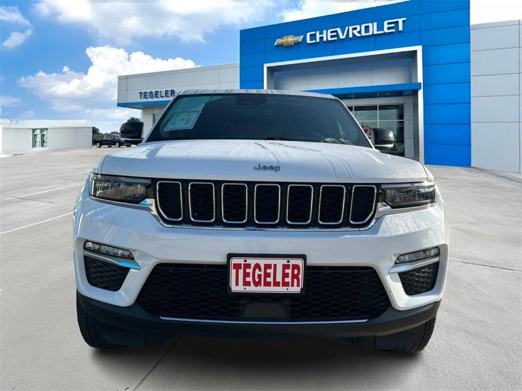 Tegeler Chevrolet is proud to present you with another True Market Priced Pre-Owned Vehicle. This 2023 Jeep Grand Cherokee Limited is loaded with the following Factory Options: Quick Order Package 23E, 3.45 Rear Axle Ratio, 4-Wheel Disc Brakes, 6 Speakers, ABS brakes, Active Noise Control System, Air Conditioning, Alloy wheels, AM/FM radio: SiriusXM with 360L, Anti-whiplash front head restraints, Audio memory, Auto High-beam Headlights, Automatic temperature control, Brake assist, Bumpers: body-color, Capri Leatherette Seats, Compass, Delay-off headlights, Driver door bin, Driver vanity mirror, Dual front impact airbags, Dual front side impact airbags, Electronic Stability Control, Emergency communication system, Four wheel independent suspension, Front anti-roll bar, Front Bucket Seats, Front Center Armrest w/Storage, Front dual zone A/C, Front fog lights, Front License Plate Bracket, Front reading lights, Fully automatic headlights, Garage door transmitter, Heated door mirrors, Heated front seats, Heated rear seats, Heated steering wheel, Illuminated entry, Knee airbag, Low tire pressure warning, Memory seat, Molded In Color Black/Gloss Black Roof Rails, Navigation System, Normal Duty Suspension, Occupant sensing airbag, Outside temperature display, Overhead airbag, Overhead console, Panic alarm, ParkView Rear Back-Up Camera, Passenger door bin, Passenger vanity mirror, Power door mirrors, Power driver seat, Power Liftgate, Power passenger seat, Power steering, Power windows, Radio data system, Radio: Uconnect 5 Nav w/10.1 Display, Rear anti-roll bar, Rear reading lights, Rear window defroster, Rear window wiper, Remote keyless entry, Security system, Speed control, Speed-Sensitive Wipers, Split folding rear seat, Spoiler, Steering wheel mounted audio controls, Tachometer, Telescoping steering wheel, Tilt steering wheel, Traction control, Trip computer, Turn signal indicator mirrors, Variably intermittent wipers, Voltmeter, and Wheels: 18 x 8 Fully Painted Aluminum!!